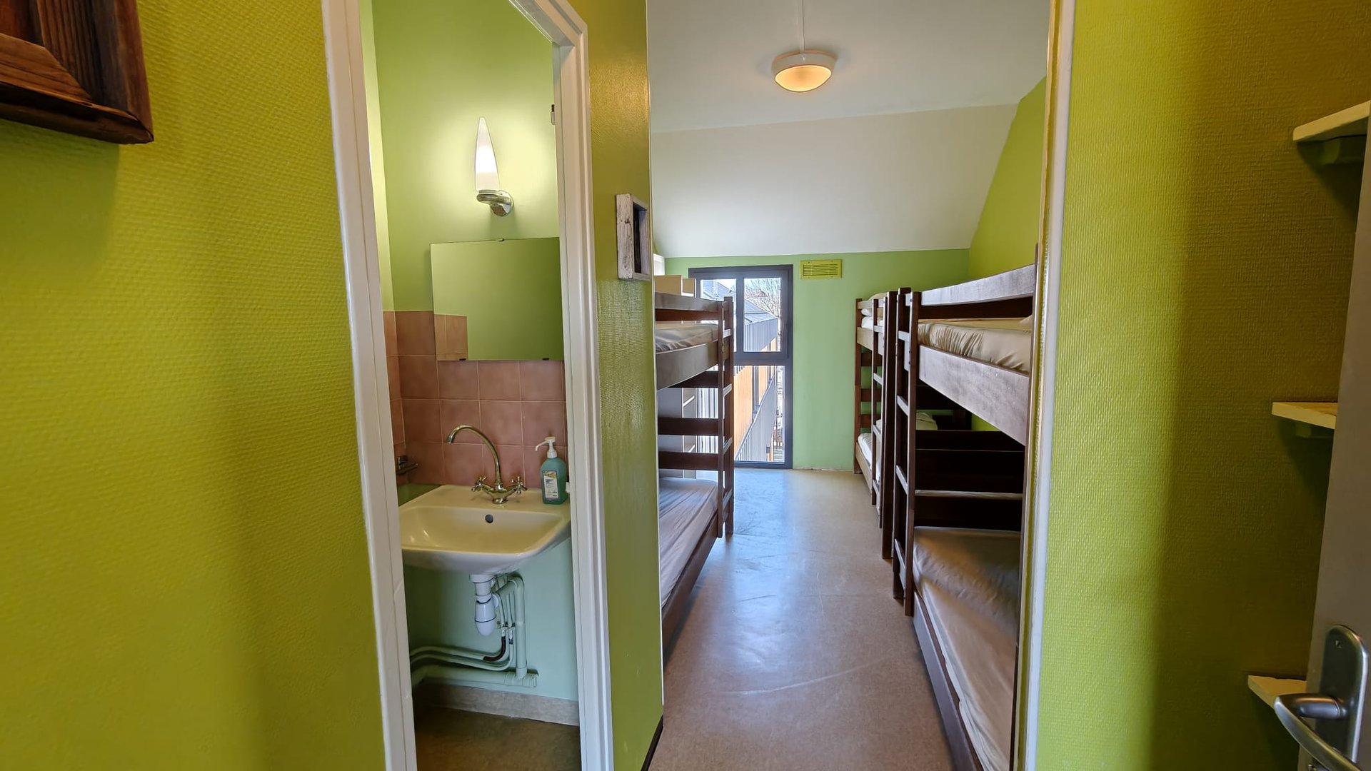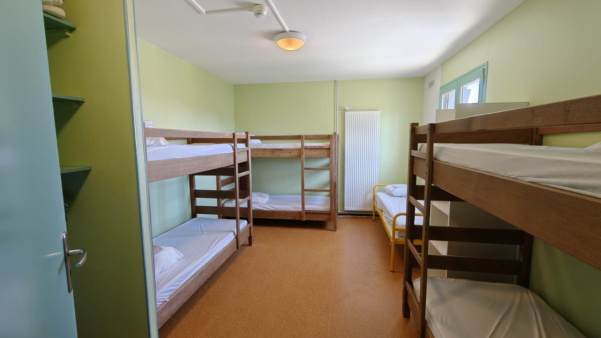 Les résidents sont hébergés en chambre de 2, 4, 6 et 7 lits avec lavabo et WC ou douche. A chaque niveau et à proximité immédiate de leur chambre se trouve les salles de douches, équipées de cabines individuelles. La capacité d'accueil est de 106 lits. Les responsables du séjour sont logés en chambre de 2 lits avec sanitaires complets. Pour les séjours de plus de 10 jours, le blanchissage du linge de corps est assuré une fois pendant le séjour.