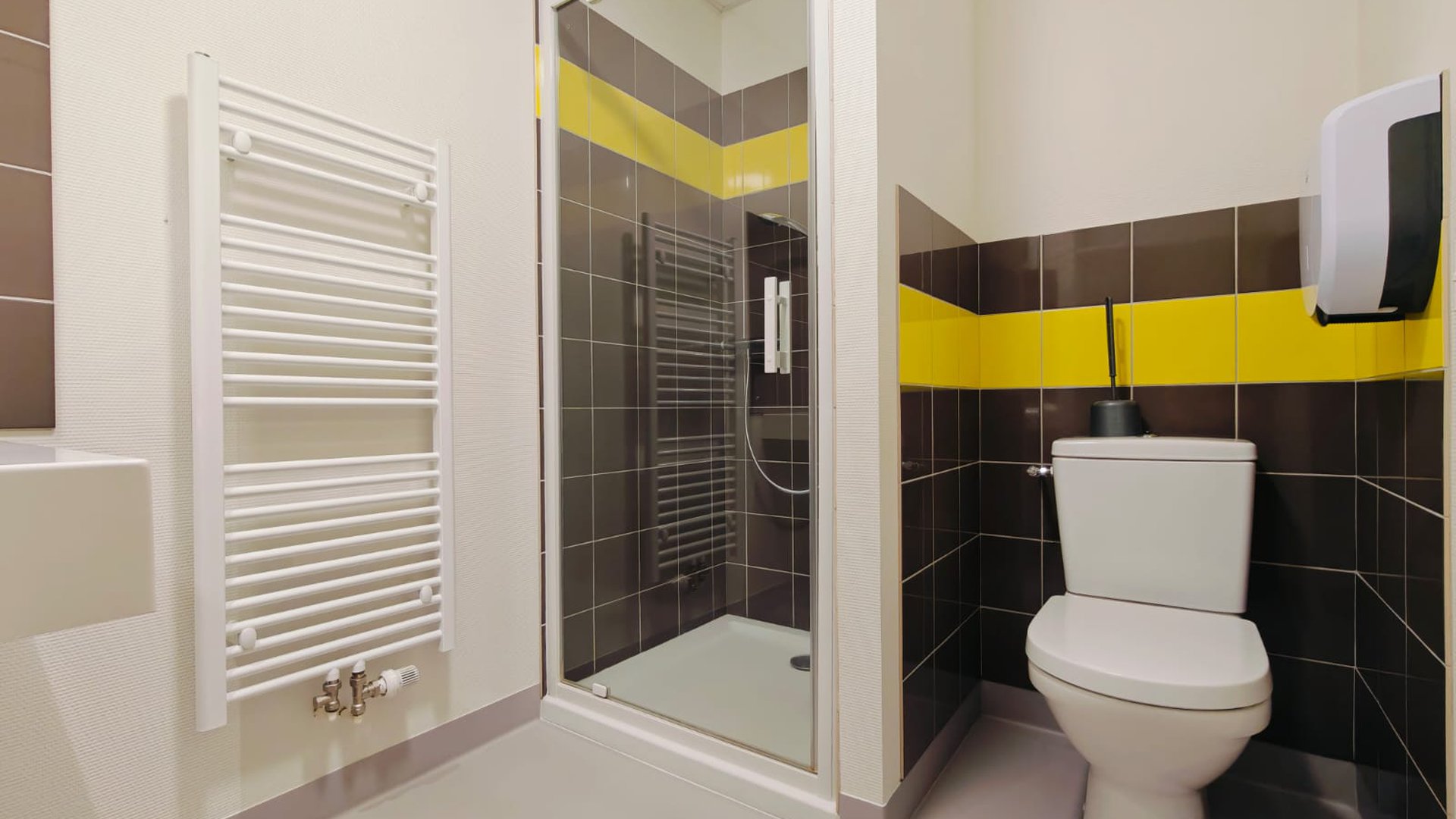 - Chambres avec salle de bain complète. Chambres simples avec lits superposés et WC et lavabos. 1 Chambre PMR.